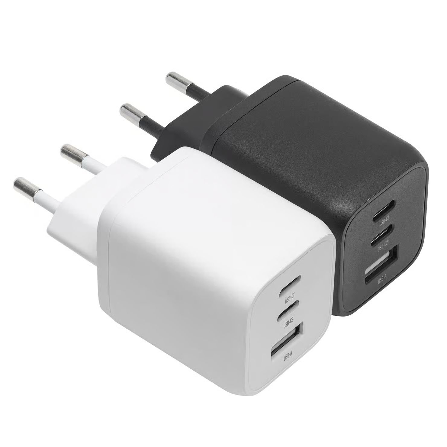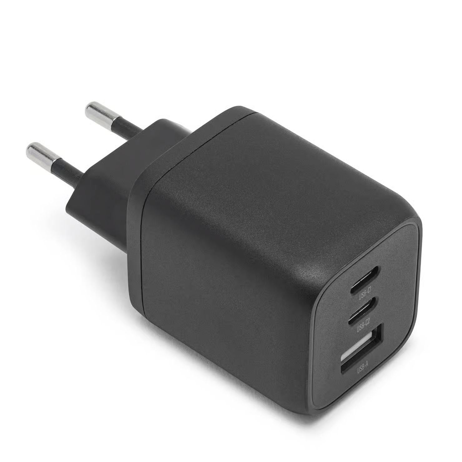 En liten och kraftfull USB-PD-laddare med dubbla USB-C-portar och en USB-A-port. Perfekt för mobil, surfplatta och laptop (upp till 65 W PD). Stöd för snabbladdning med USB PD, Quick Charge 3.0 och PPS. USB-kabel säljes separat.