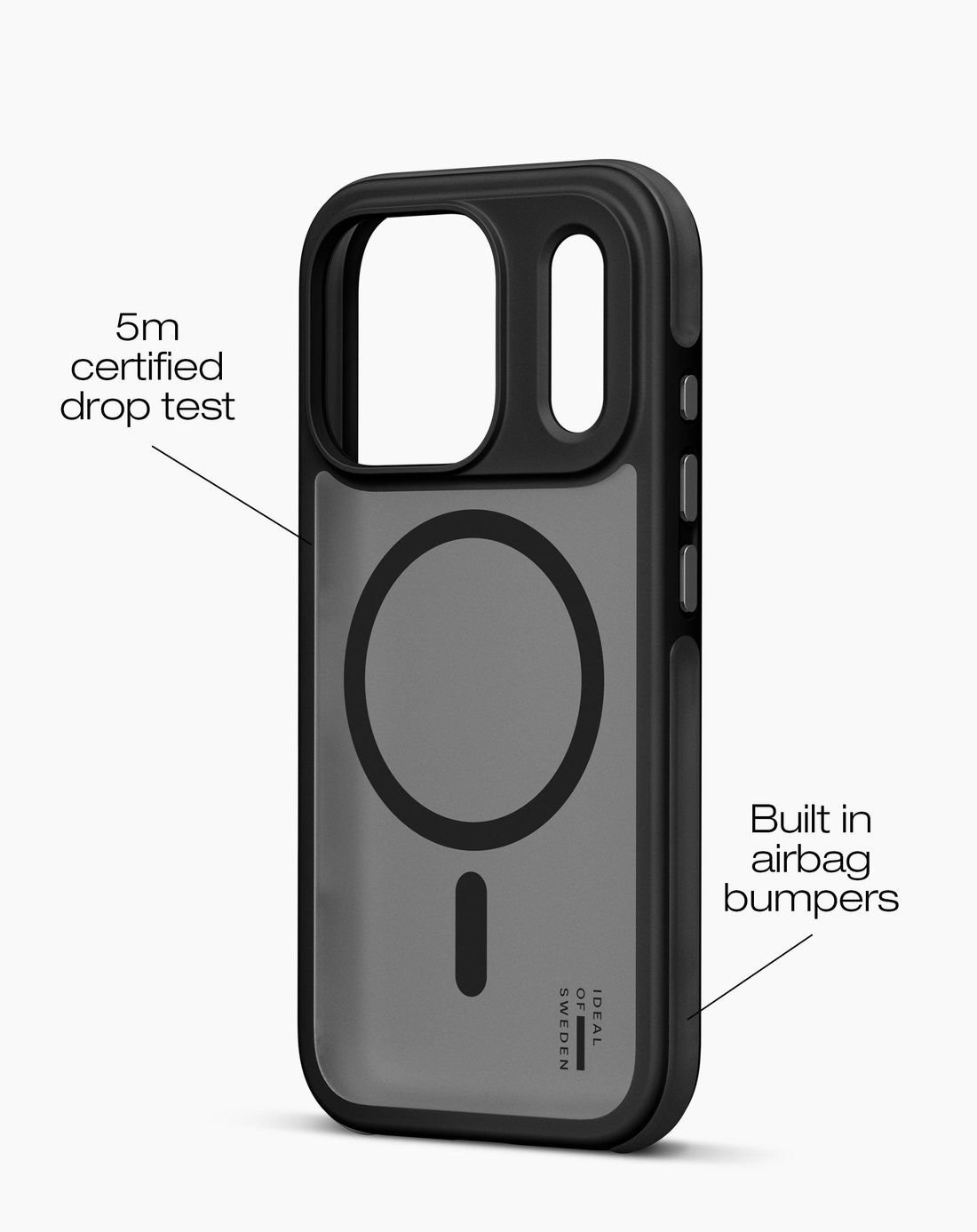 Detta iPhone 17 pro-skal är utvecklat i en slim-fit och minimalistisk design med imponerande skydd. Skalet har klarat falltester från hela 5 meter! Sidorna är förstärkta med luftfickor som gör dem extra stötdämpande och fungerar som små airbags om telefonen tappas. Kanterna runt skärmen och kameralinsen är dessutom lätt upphöjda för att ge ännu bättre skydd och minska risken för repor eller sprickor.